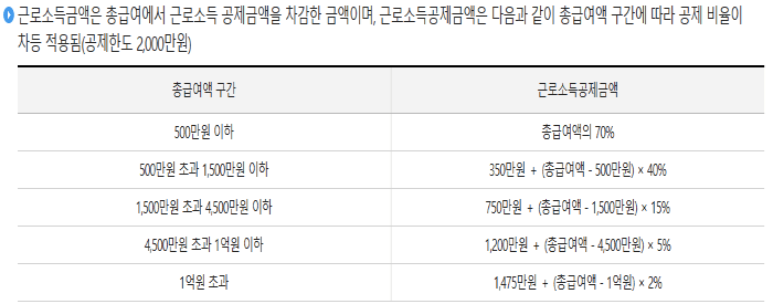① 총 급여액 : 연봉에서 비과세소득을 뺀, 세금이 부과되는 연간근로소득을 말한다.