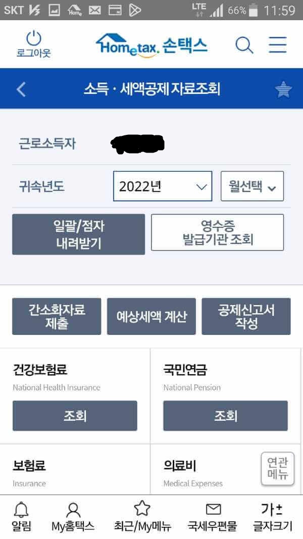 위 PC로 이용하는 방법을 보셨으면 사진만 봐도 이해하실 겁니다. 스마트폰에서 "국세청 손택스" 앱을 깔아주시고 공동인증서 or 간편 인증서로 로그인하신 후 PC에서 하시던 것처럼 하시면 쉽게 끝내실 겁니다.
